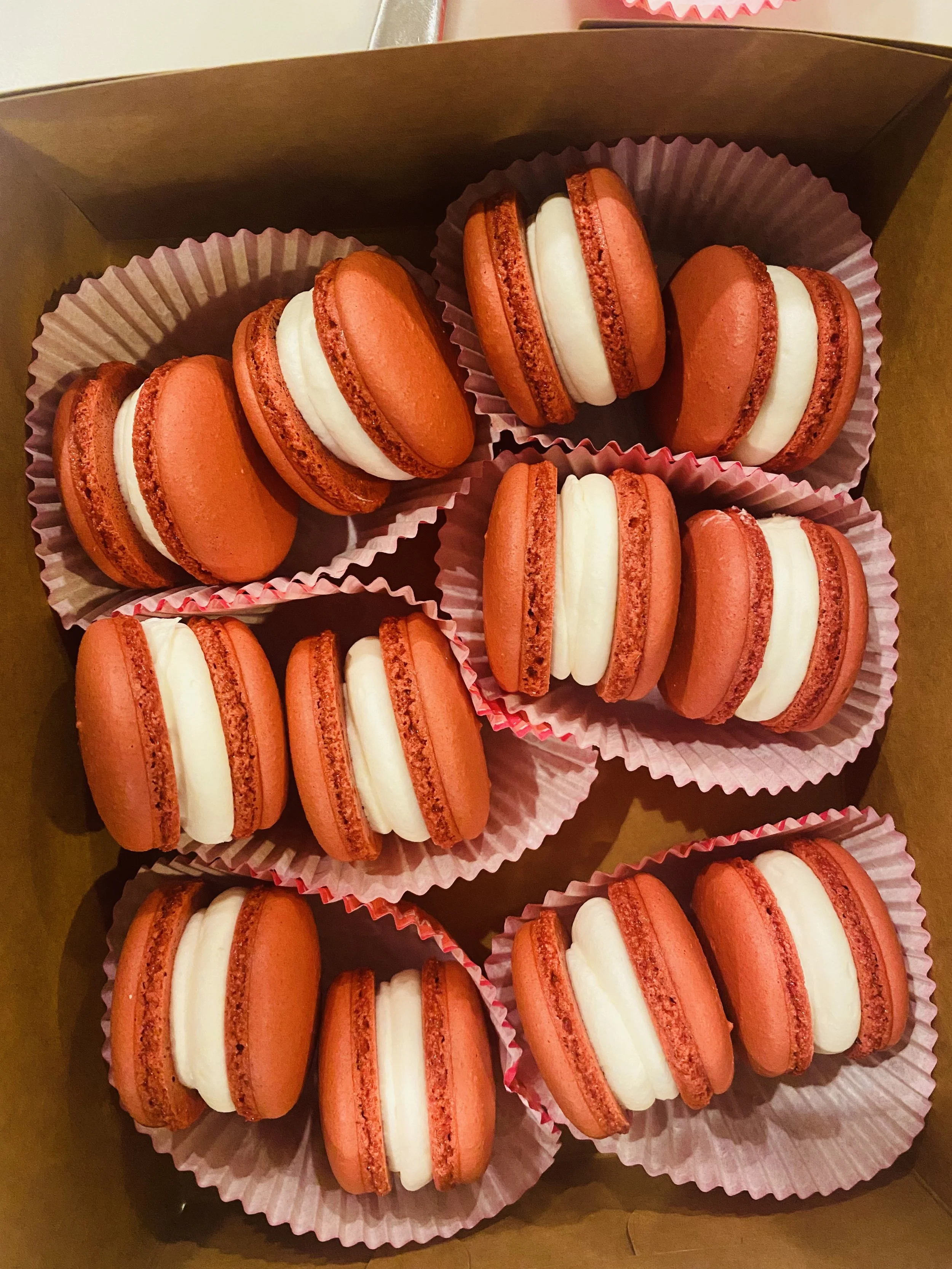 Frankie Mac macarons are made with intricate thought and care. Each batch is filled with made from scratch buttercream, jams, and ganaches and boxed beautifully.